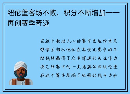 纽伦堡客场不败,积分不断增加——再创赛季奇迹